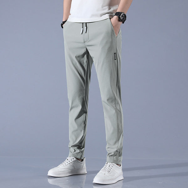 Men's Korean Style Casual Pants, Long Trousers, Slim Fit, No Waistband, Zipper Closure, Lightweight, 92% Polyester Blend Fabric