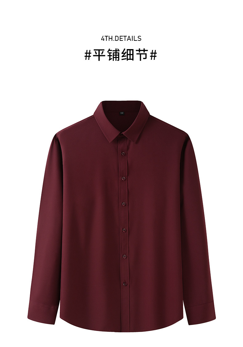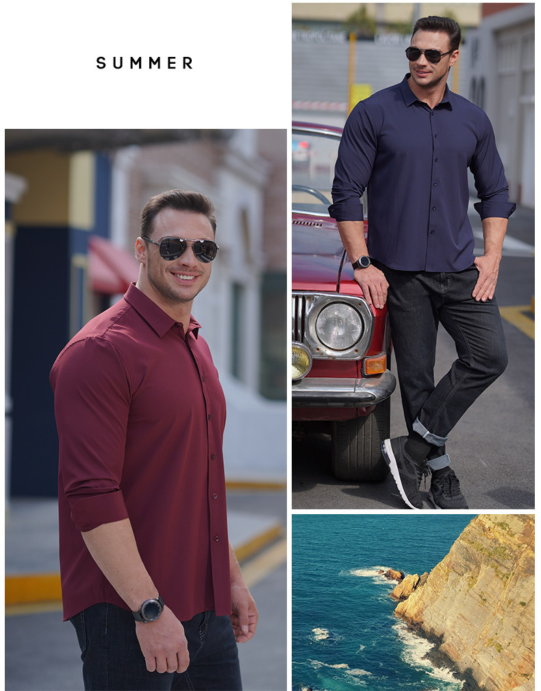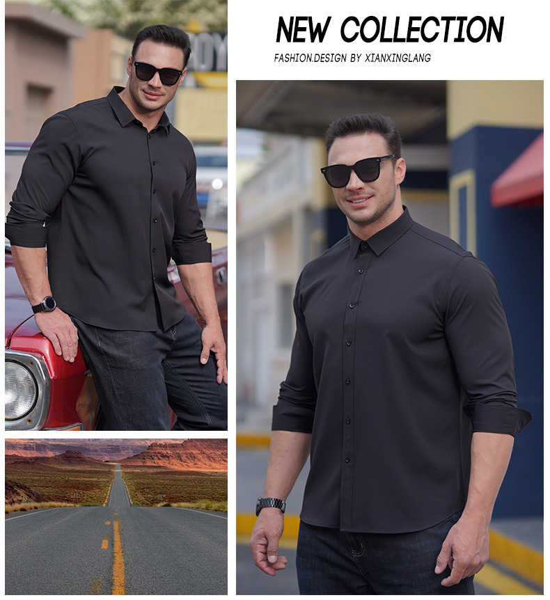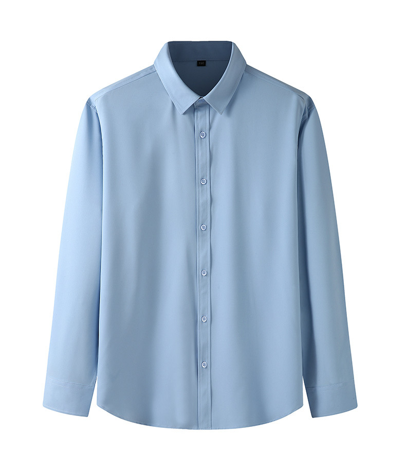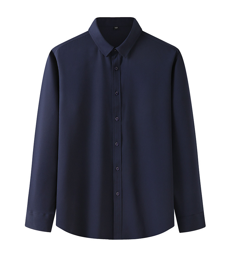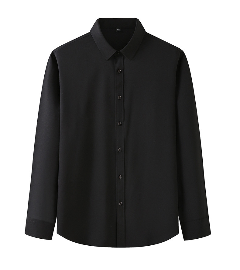 Men's Stretchy Long Sleeve Solid Color Business Casual Shirt for Spring and Autumn