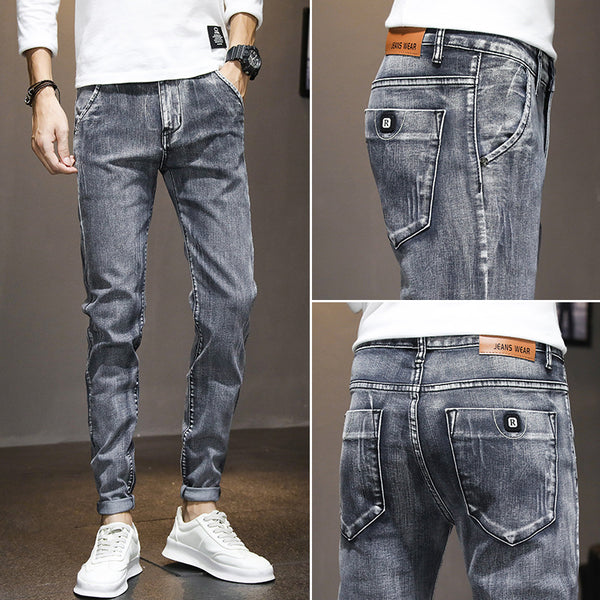 Men's Korean Style Jeans - Stylish, Slim Fit, Water Washed, Mid Waist