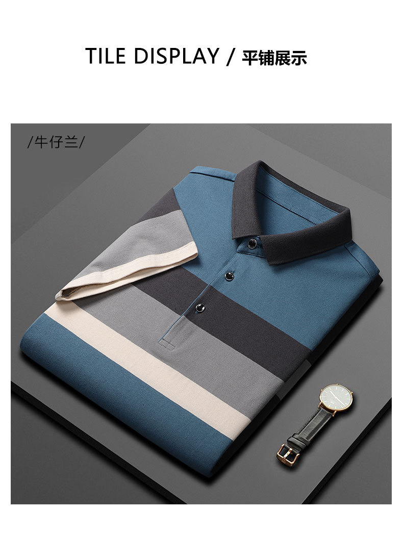 Men's Summer Casual Business Striped Short Sleeve T-Shirt with Turn-down Collar