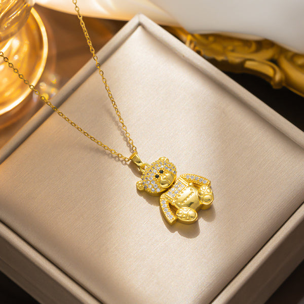 {"Shape":"Geometric","Style":"Light Luxury","Weight":"8g","Material":"Titanium Steel Vacuum Electroplating","Perimeter":"41cm (inclusive) - 50cm (inclusive)","Chain Style":"O-Link Chain","Multi-Layer":"No","Fashion Element":"Teddy Bear","Place of Origin":"Guangzhou","Applicable Crowd":"Female","Pendant Material":"Titanium Steel","Style Classification":"Fashionable Commuting","Processing Technology":"Inlaid with Diamonds","Fashion Element Category":"Animal"}