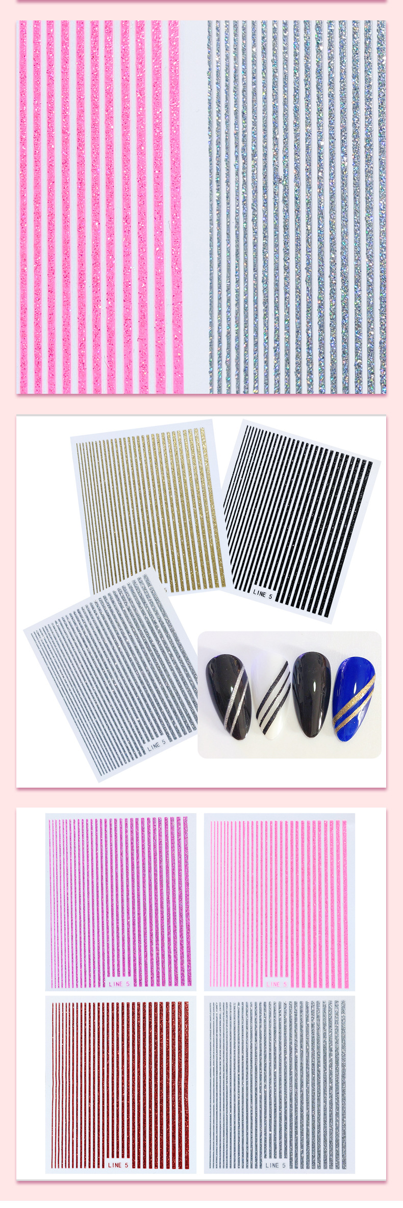 Line5-1 Glitter Nail Stickers, Nail Decorations with Gold, Silver, Red, Black, Yellow, and More