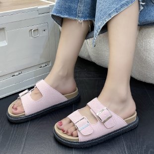 Fashionable Thick Sole Buckle Shoes for Women, Summer New French Casual Soft Sole Anti-Slip One Word Slippers