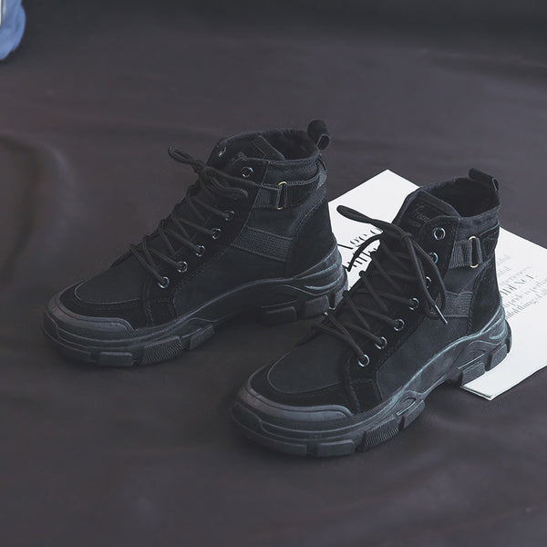 {"Style":"Korean Version","Pattern":"Solid Color","Function":"Wear-resistant","Age Range":"Adults","Heel Shape":"Flat Heel","Closure Type":"Lace-up","Gross Weight":"0.8KG","Shaft Height":"High Top","Sole Material":"Plastic","Wearing Style":"Front Tie","Inner Material":"Fabric","Upper Material":"Canvas","Fashion Element":"Stitching, Leather Splicing","Product Category":"Canvas Shoes","Sole Craftsmanship":"Injection Molded Shoes","Gender Applicability":"Unisex/Both Men and Women","Seasonal Suitability":"Autumn","Leather Characteristics":"Suede"}