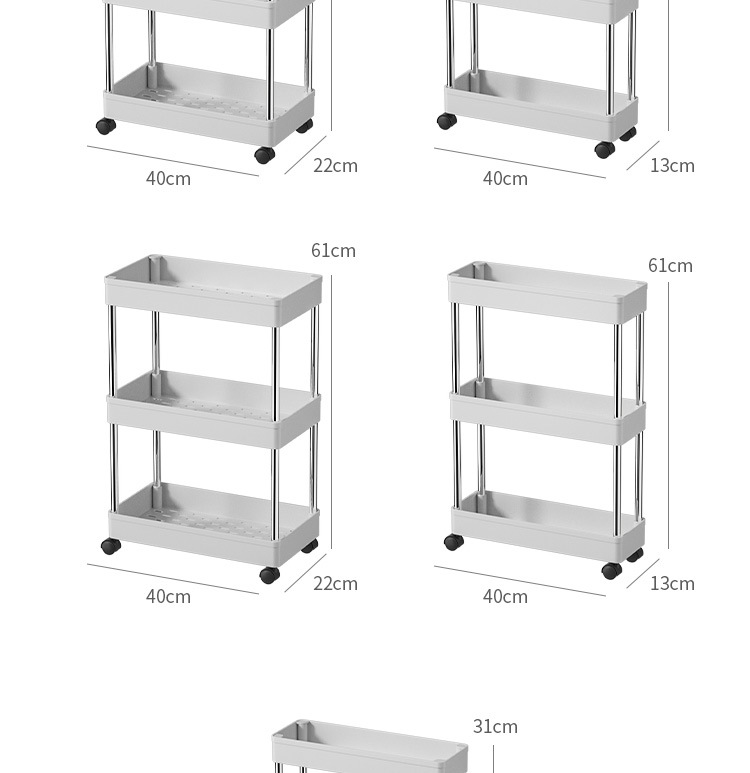 - ["Made of durable steel frame","Multi-purpose and moveable design","Available in various sizes and colors","Easy to assemble and clean","Perfect for kitchen, bathroom and living room"]