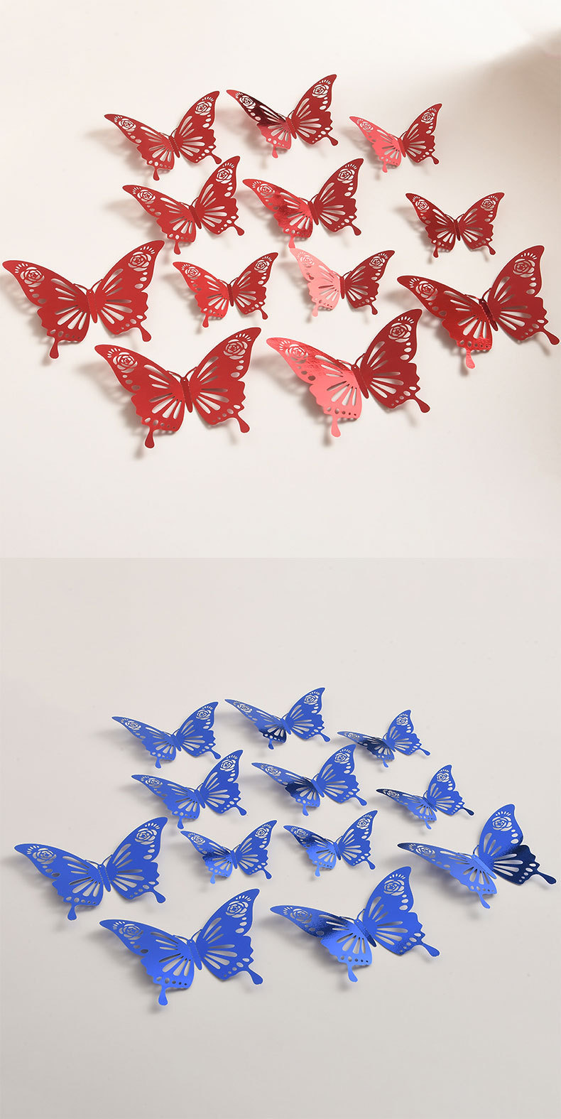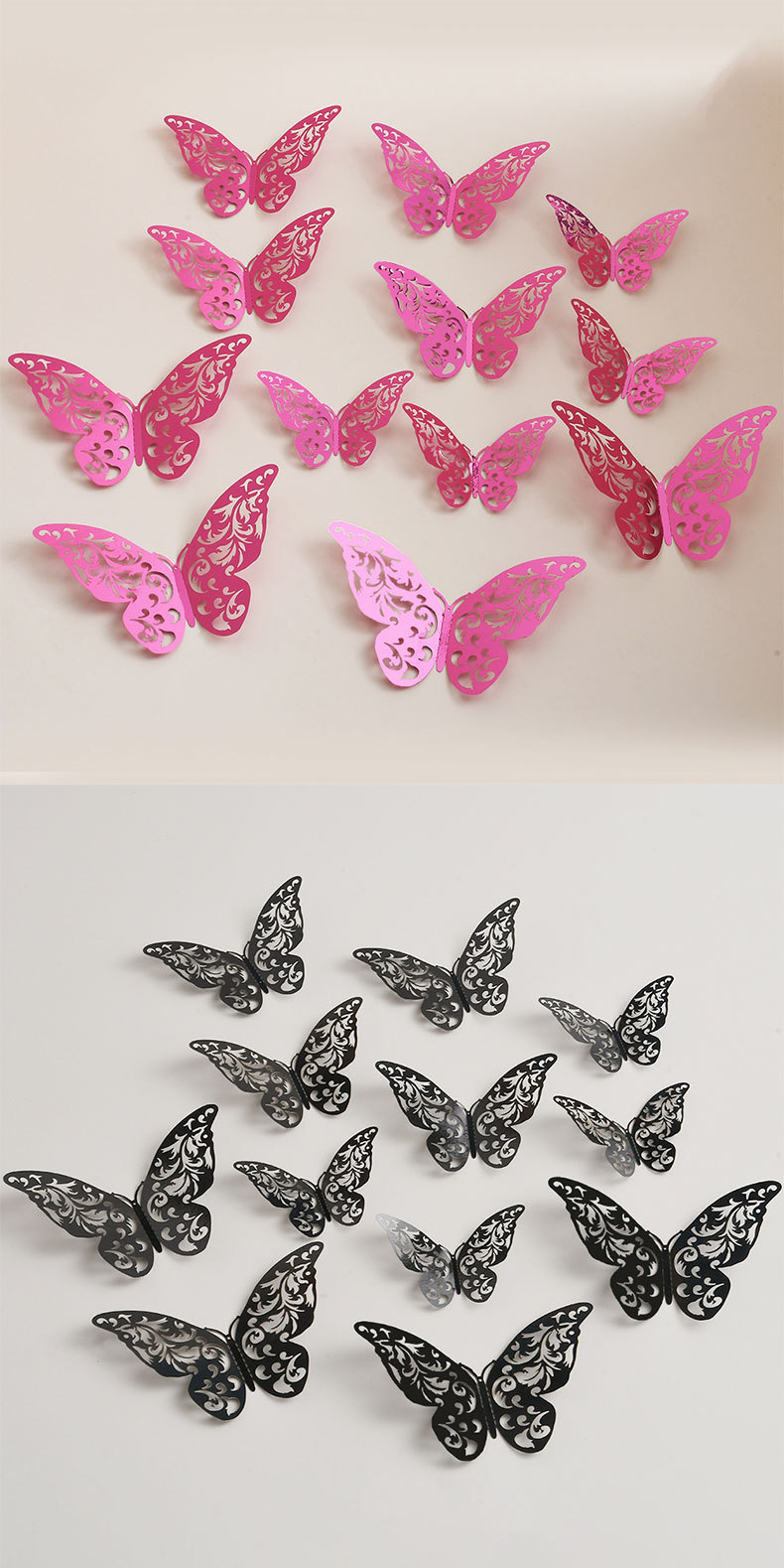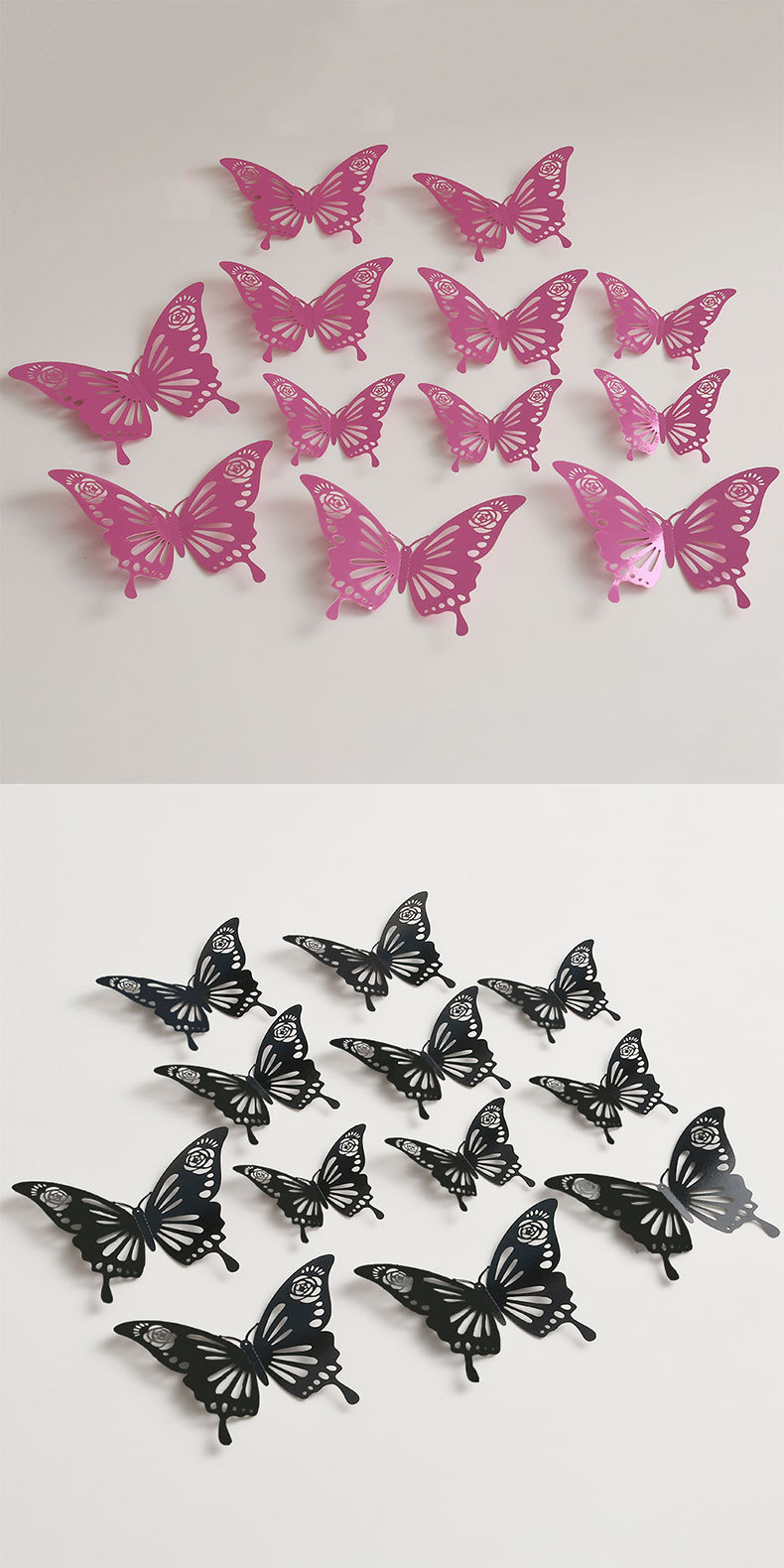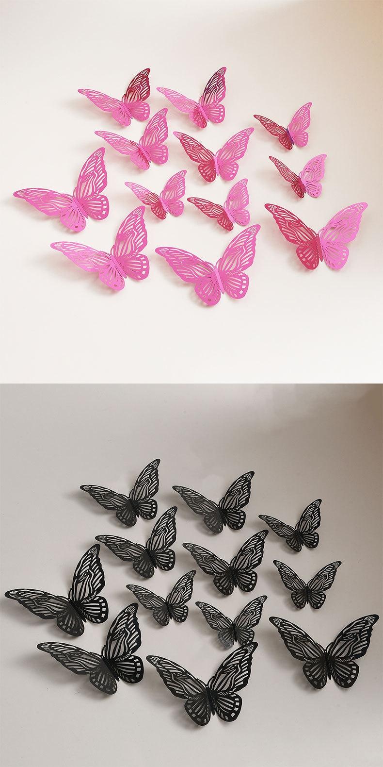 - ["3D Hollow Butterfly Selfie Props","Modern Design for Home Decor","Made of High Quality PET Material","12 Colors Available","Easy to Install"]