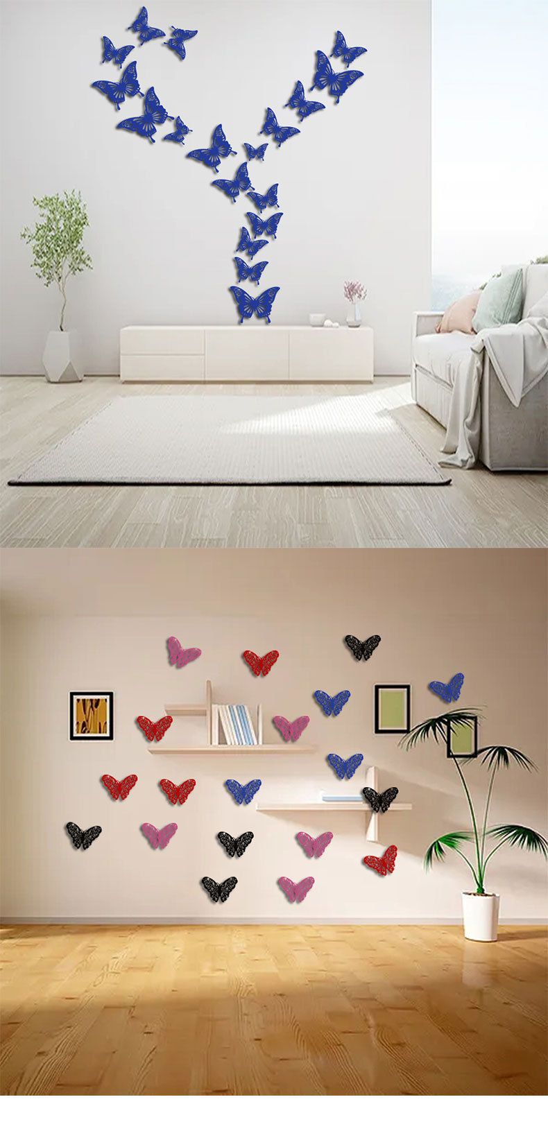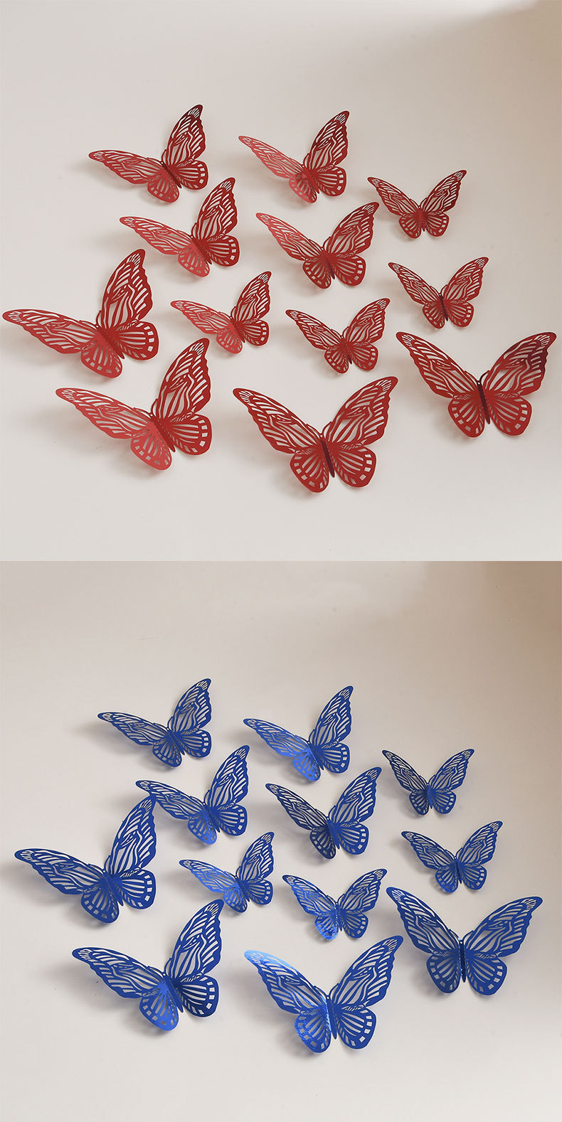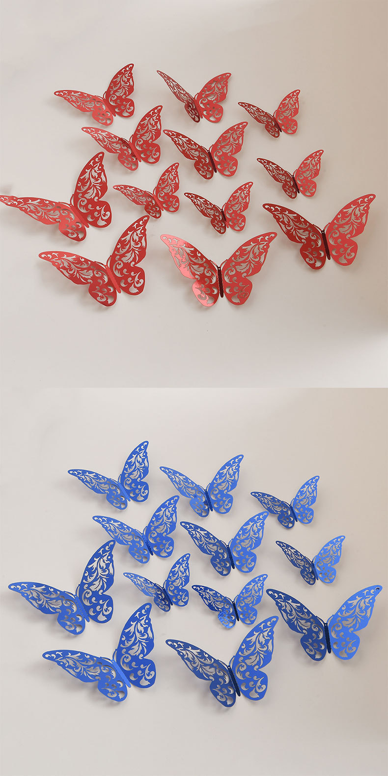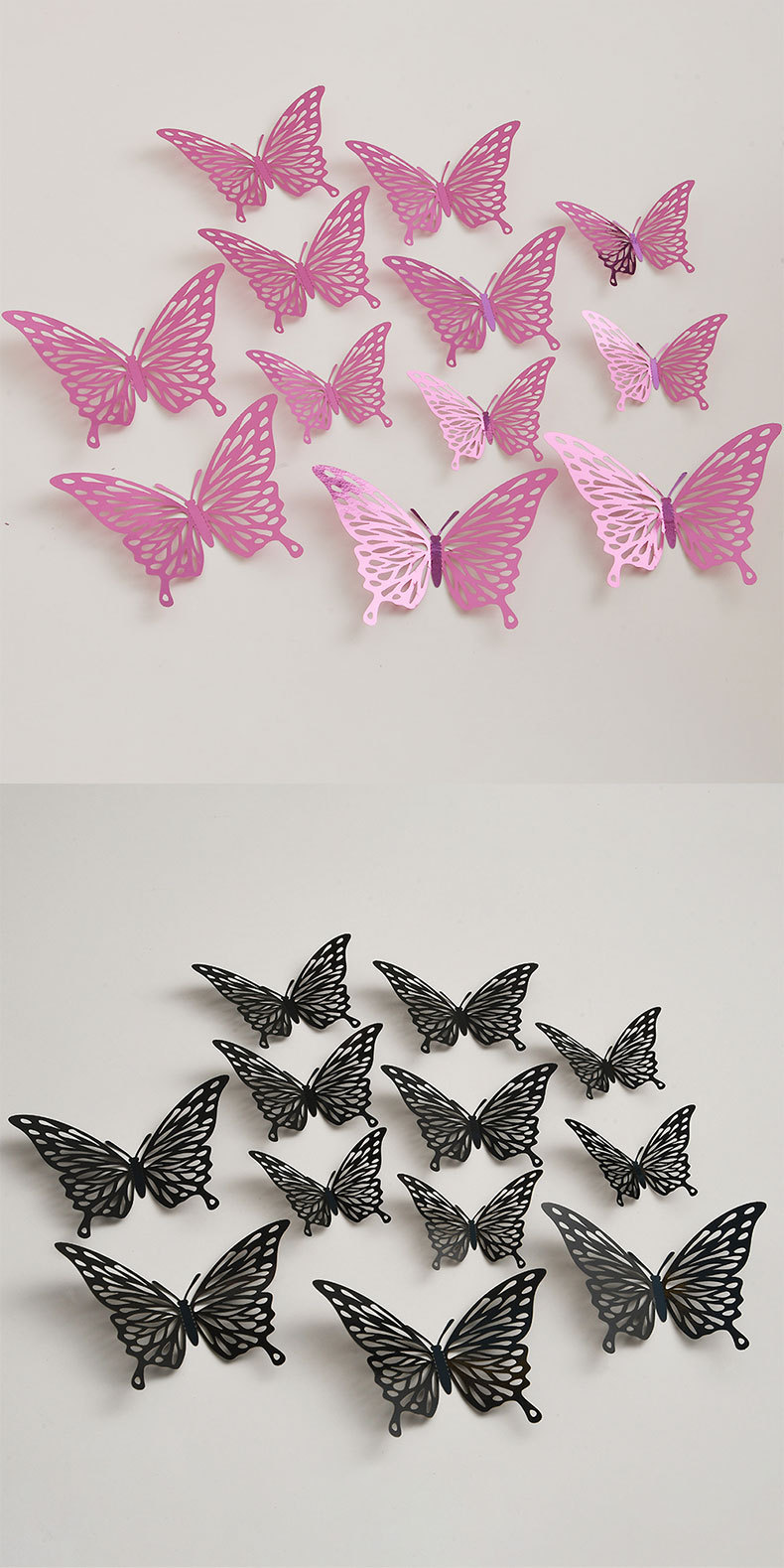- ["3D Hollow Butterfly Selfie Props","Modern Design for Home Decor","Made of High Quality PET Material","12 Colors Available","Easy to Install"]