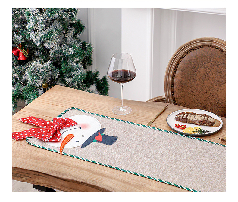 - ["High-quality material for long-term use","Unique Christmas Snowman Table Flag design","250/Box 65*42*60 36*27*4cm packaging","Insulation pad to keep the table warm","Decorate your home with festive atmosphere"]