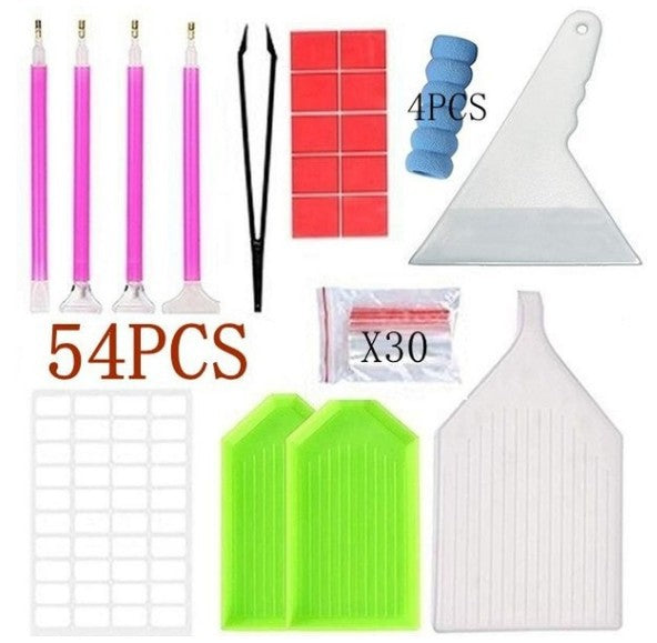 - ["This kit is perfect for DIY diamond painting projects and crafts","It comes with a convenient storage bag for easy carrying and organization","The kit includes 60 grids for diamond painting","The kit includes a variety of colors and sizes","It is great for both beginners and experienced diamond painters"]