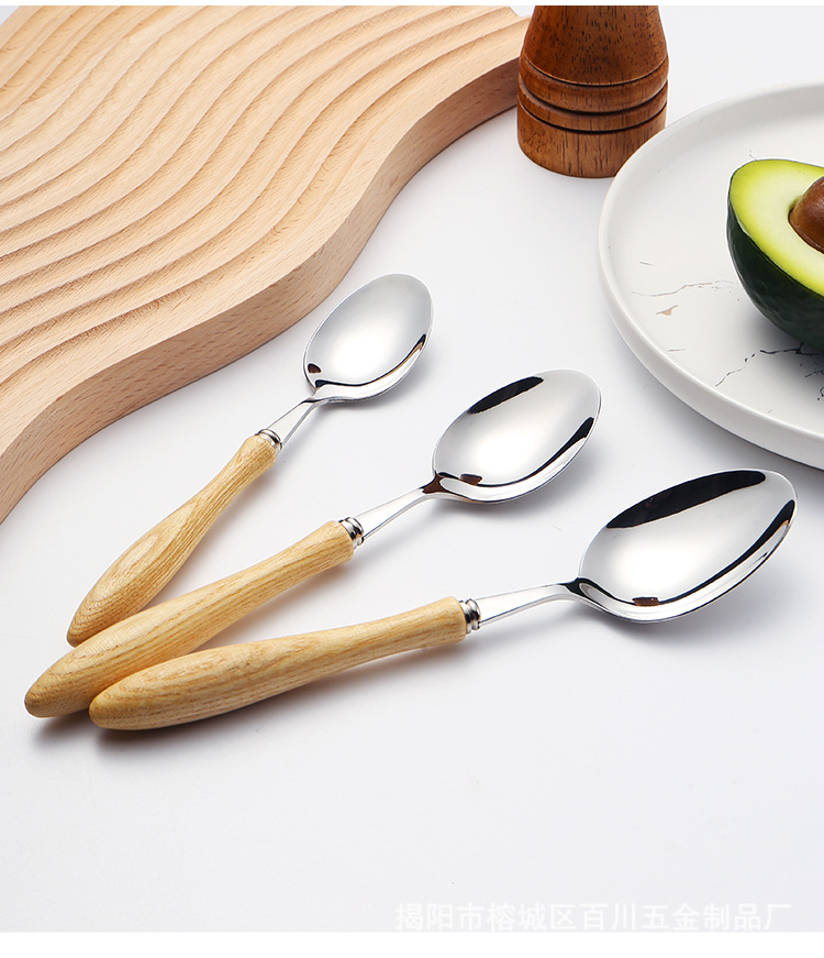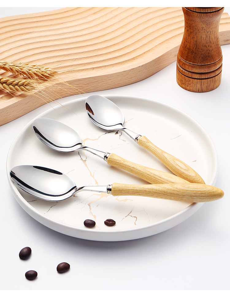 304 Stainless Steel Japanese Sweet Spoon Fork with White Waxed Solid Wood Handle