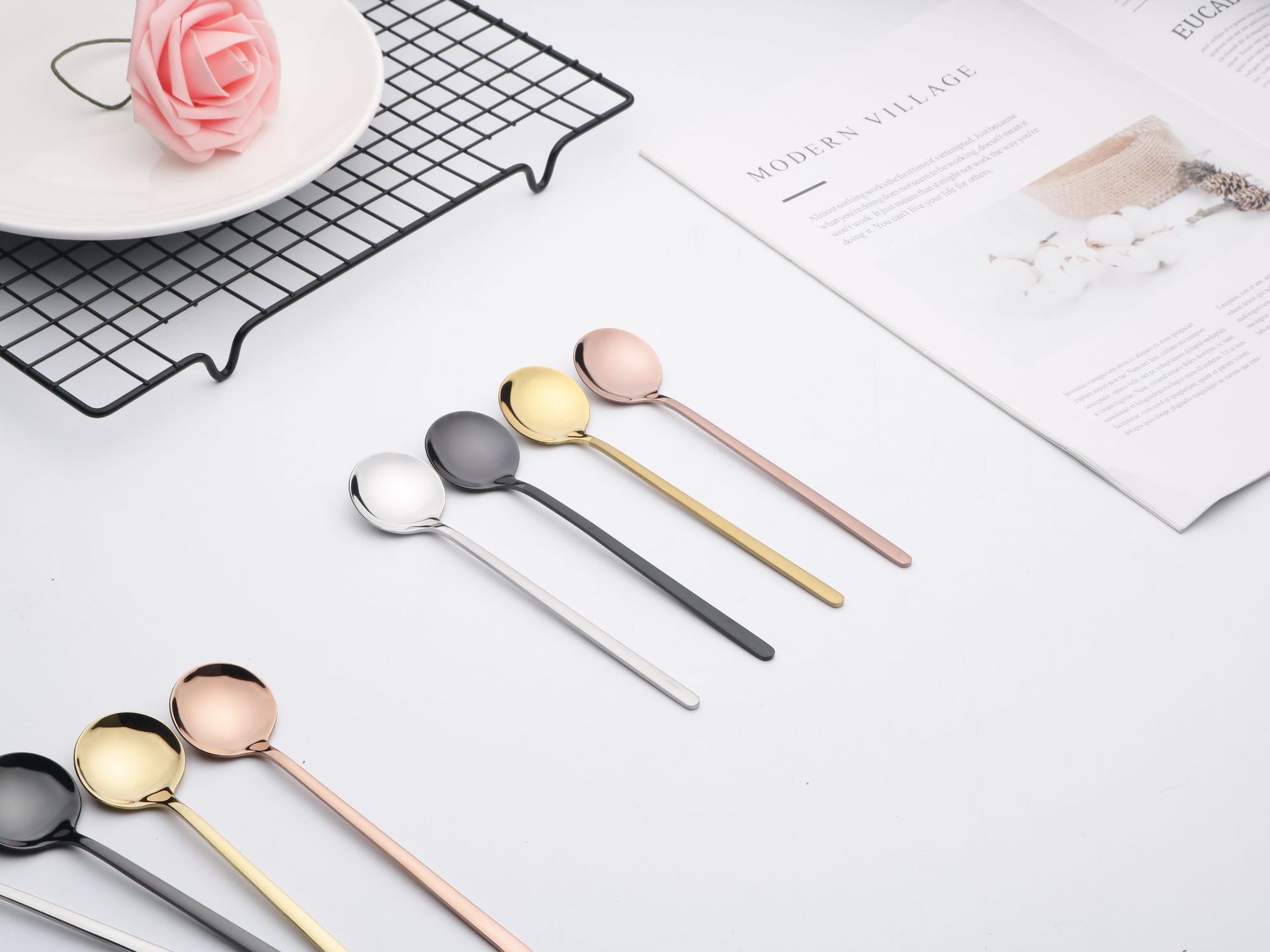 - ["Made of 304 stainless steel, durable and rust-resistant","Milled titanium plating, stylish and fashionable","PVC bag, easy to store and carry","Gold color mixing coffee spoon, perfect for stirring coffee","Suitable for adults, a great gift for your friends"]