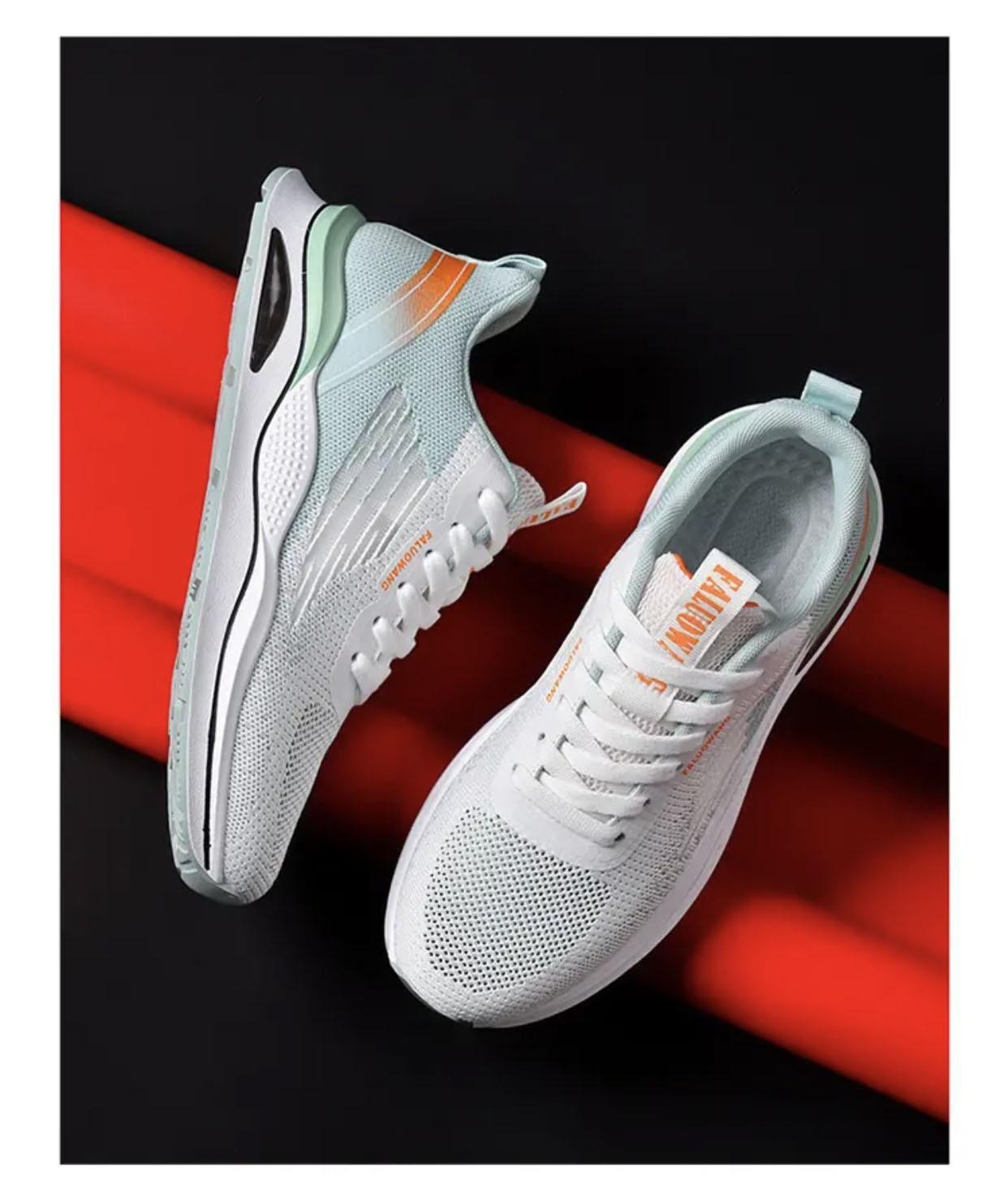 - ["Highly breathable mesh upper for keeping your feet cool and comfortable","EVA midsole for cushioning and shock absorption","Rubber outsole for better grip and traction","Fashionable design with stripes pattern","Lace-up closure for secure fit"]