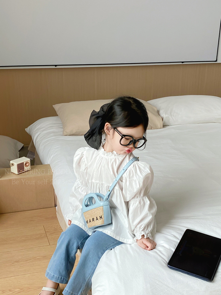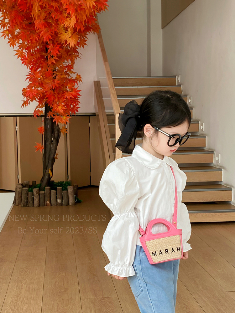 Korean Style PU Leather Kids Bag with Embroidery Alphabet for Girls, Perfect for Daily Wear
