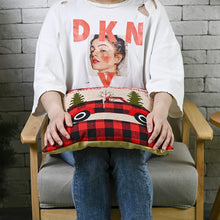 Red & Black Plaid Xmas Tree Pillow - OPP Bag Packaging, Polyester Fabric, 42cm x 42cm