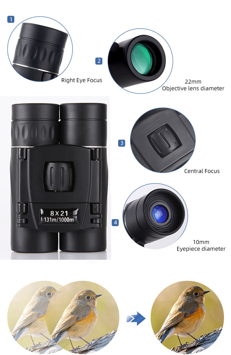 8X21 40X22 100X22 High-Power Binoculars with Double Barrel Structure for Outdoor Use