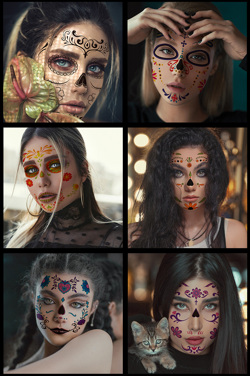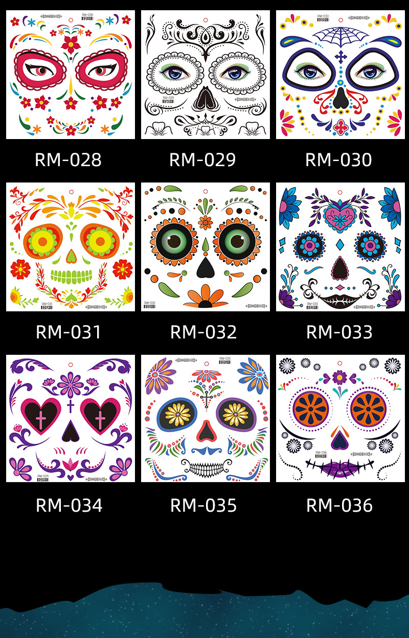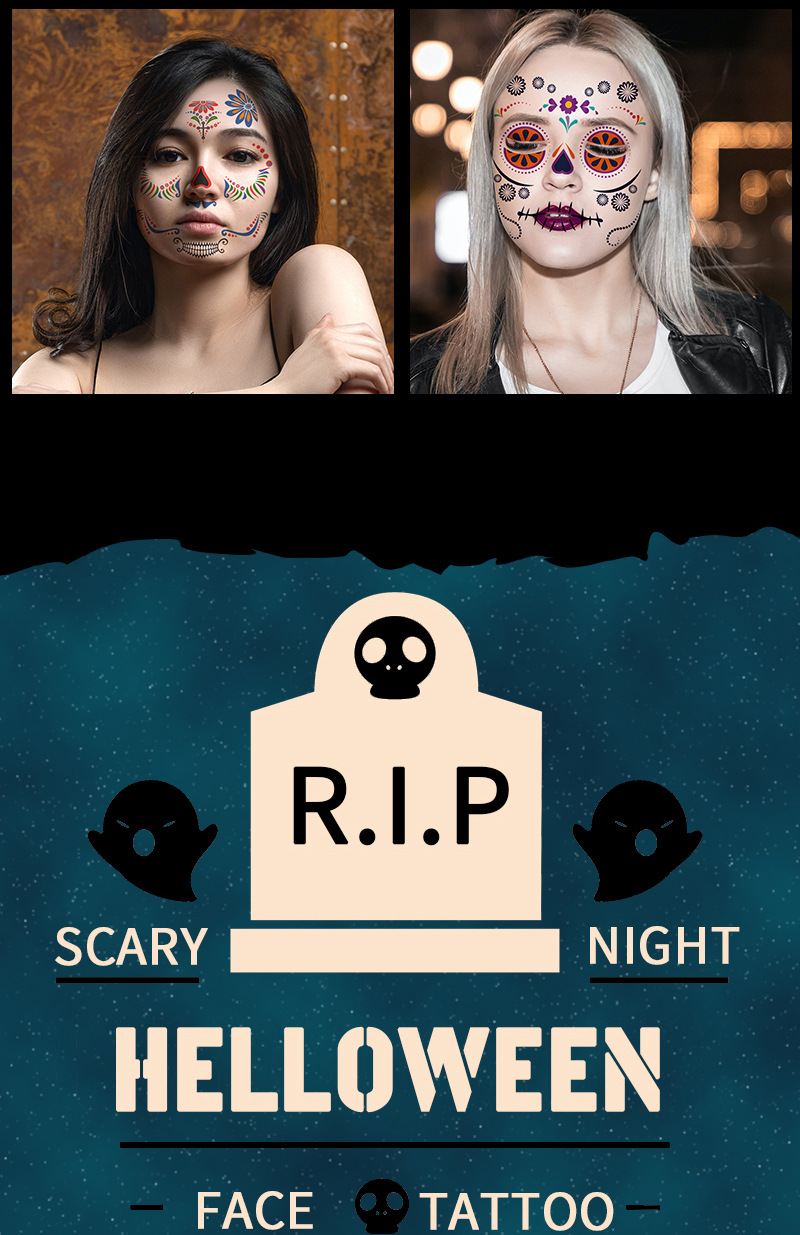 New Halloween Face Tattoos - Flower Dead Festival Tattoos Decoration for Party Makeup