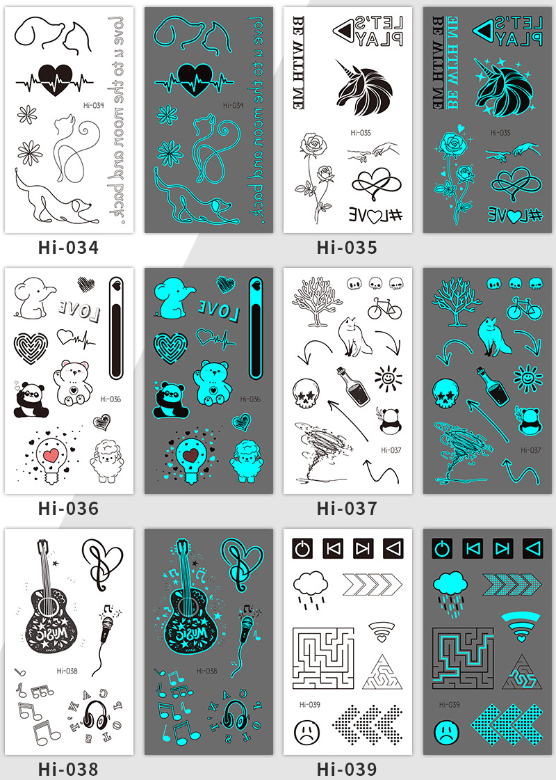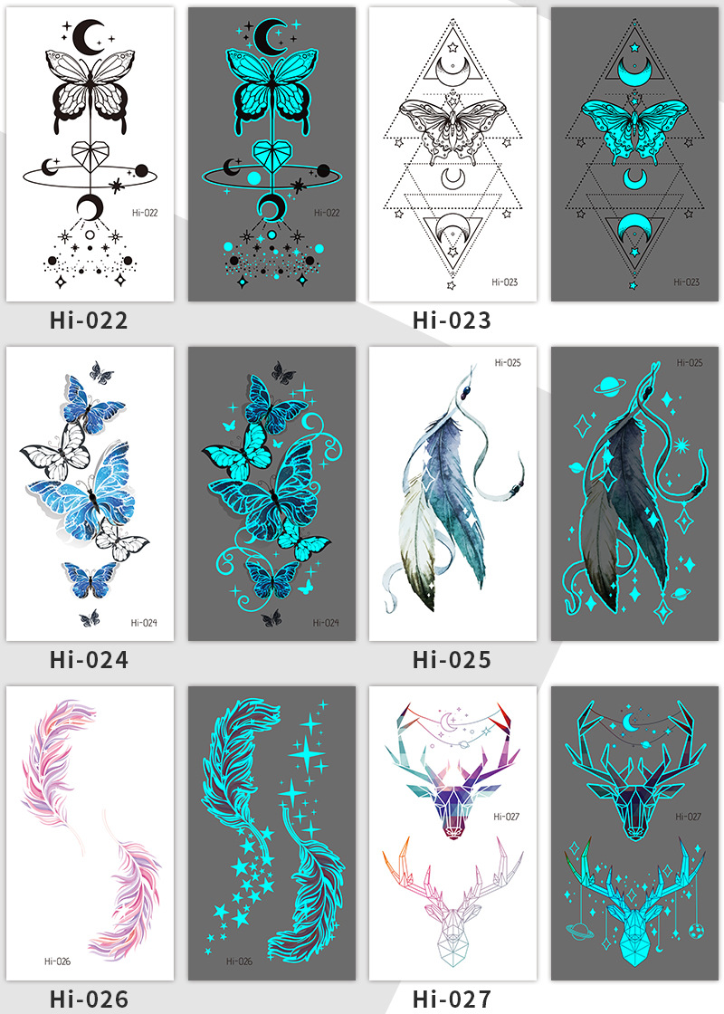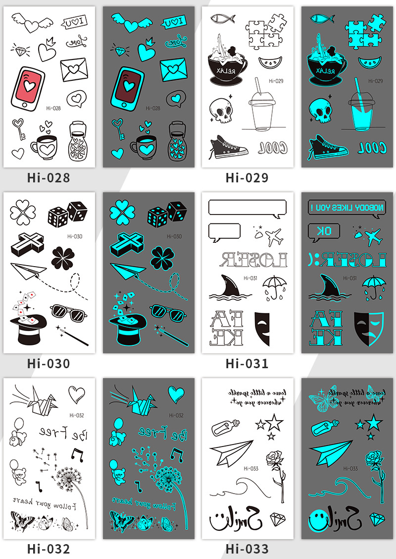 New Blue Night Glow Tattoo Stickers Waterproof for Parties