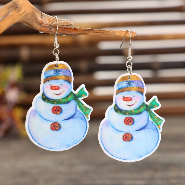 Christmas Snowman Earrings - Vintage Acrylic Print Earrings
