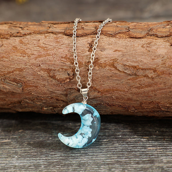 New Personality Simple Blue Sky White Clouds Moon Pendant Necklace