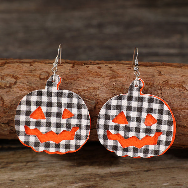 Vintage Halloween Plaid Leather Pumpkin Earrings - Multiple Layers of Leather and Pumpkin Skin