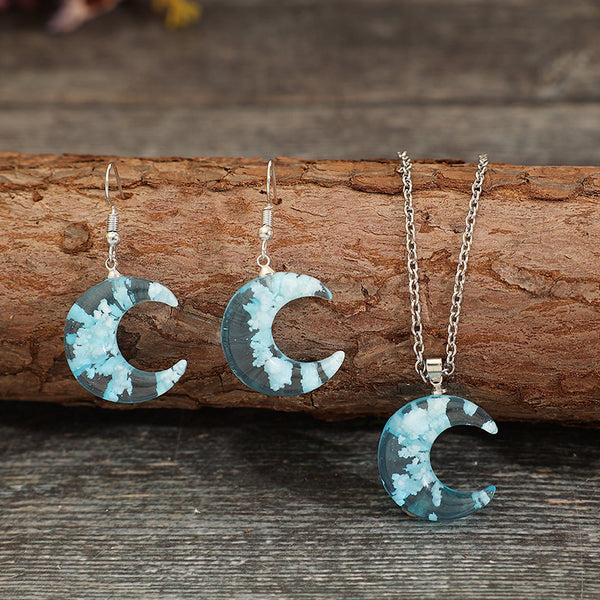 New Fashion Blue Sky White Cloud Moon Pendant Necklace Set