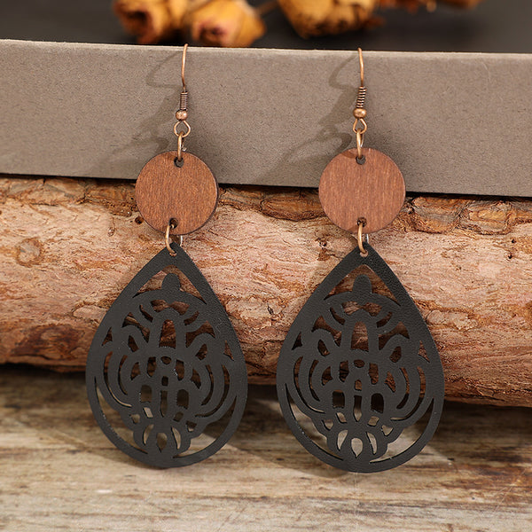 Vintage Floral Hollow Earrings Handmade with Leather Material