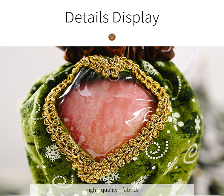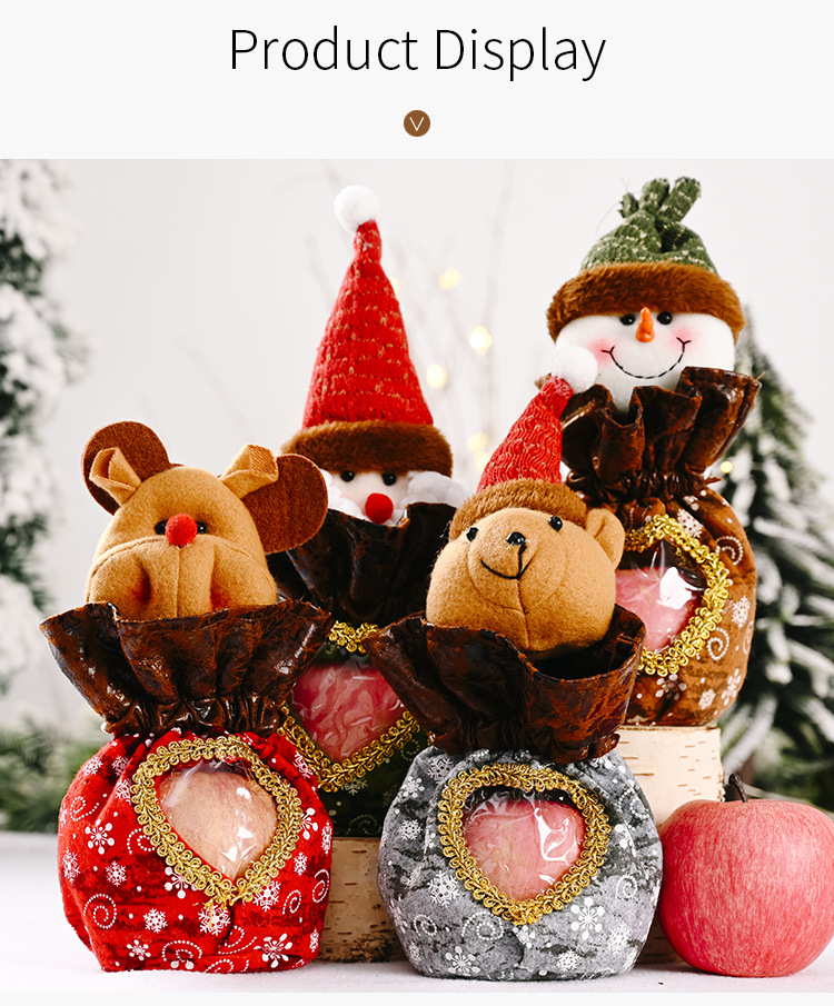{"Size":"As shown in the picture","Category":"Christmas Apple Bag","Material":"Polyester","Craftsmanship":"Semi-manual and Semi-mechanical","Patented Source":"No","IP Authorization":"No"}