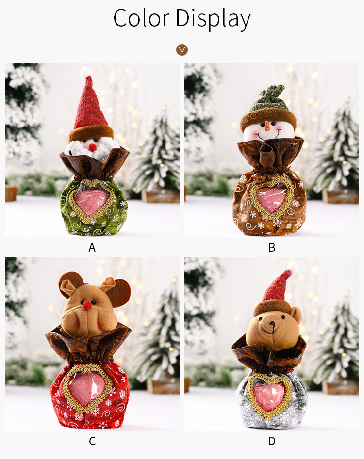 - ["Made of high quality cotton material","Half hand half machine craft","Cute cartoon transparent candy bag","Suitable for kids gift","Ideal for Christmas decoration"]