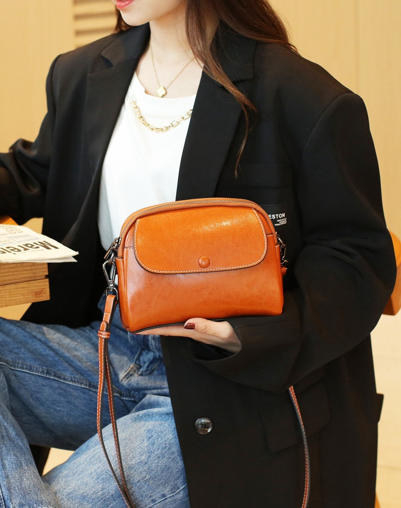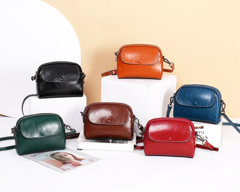 {"Style":"European and American Retro","Layered":"No","Bag Size":"Small","Bag Type":"Inner Bag","Hardness":"Soft","Material":"Genuine Leather","Bag Shape":"Shell-shaped","Fabric Quality":"Polyester Cotton","Opening Method":"Screw-on Lid","Bag Trend Style":"Shell Bag","Fashion Element":"Stitching Line","Applicable Scene":"Daily Matching","Number of Straps":"Single","Internal Structure":"Zipper Pocket, Phone Pocket","Leather Characteristics":"Oil Wax Leather"}