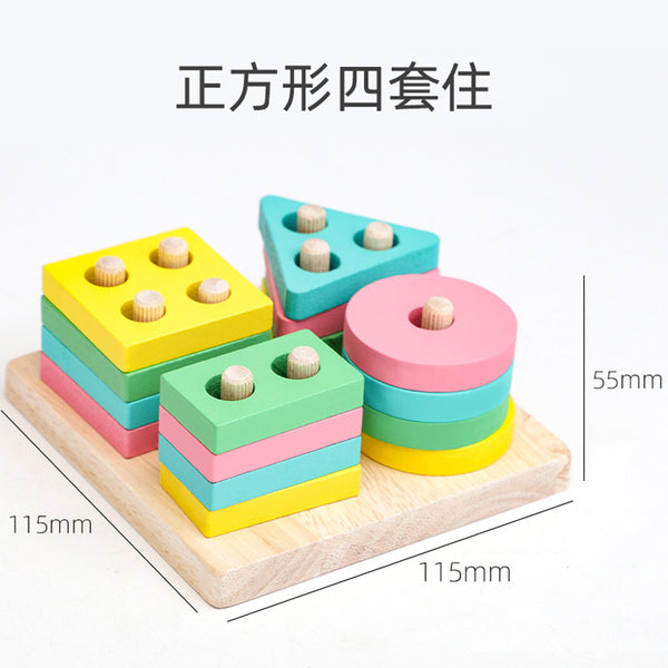 4-in-1 Wooden Educational Toy for Kids Age 0-2, Intelligence Development, Hand-eye Coordination, Interest Cultivation and Shape Matching