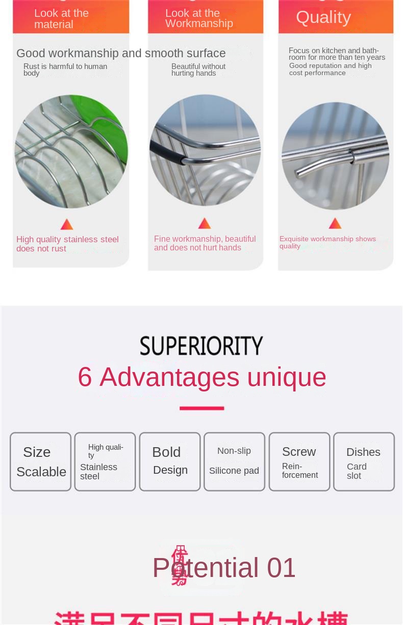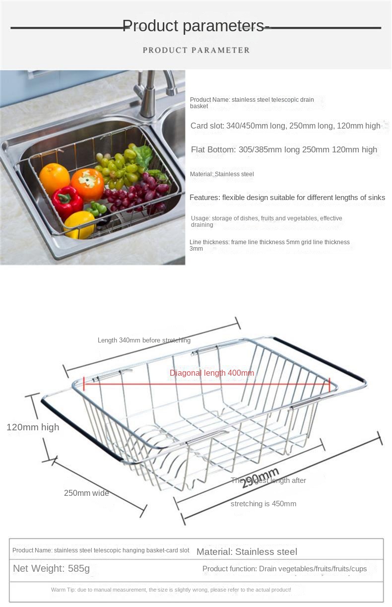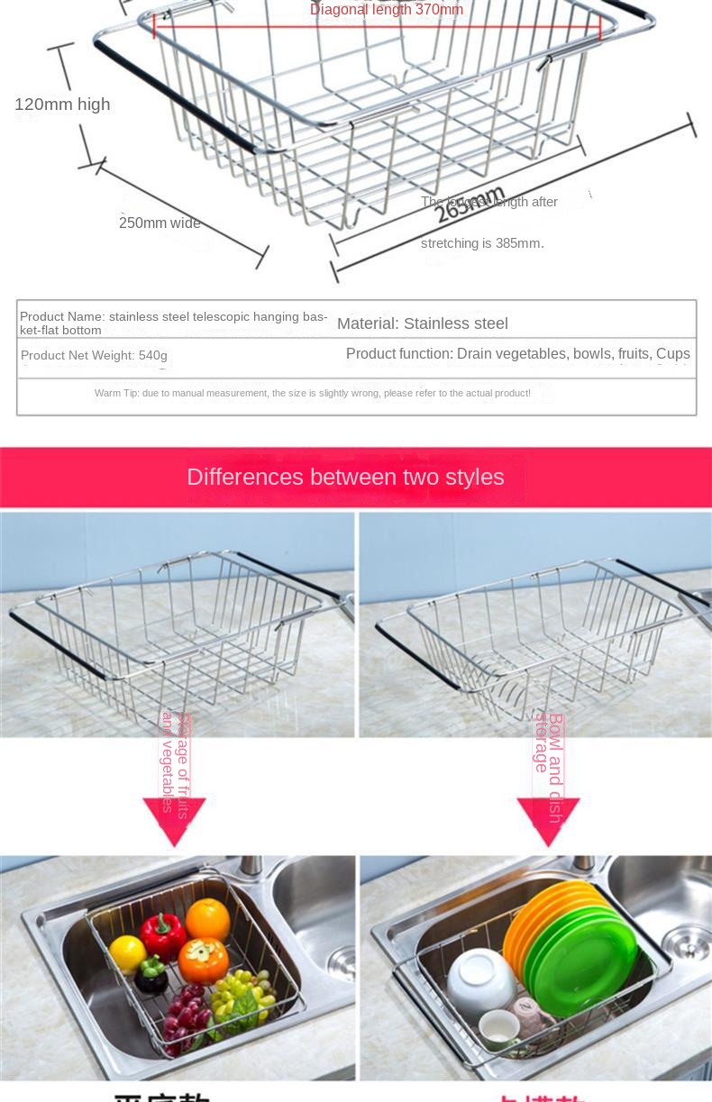 304 Stainless Steel Kitchen Sink Rack with Adjustable Baskets and Filter Net for Dishwashing and Storage