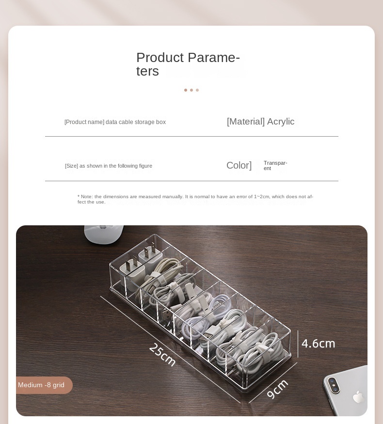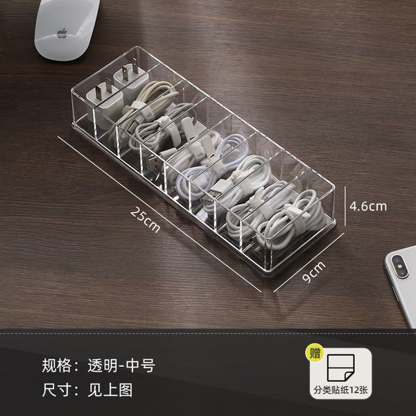 Transparent Power Line Organizer Box with Compartments for Phone Charger Cables