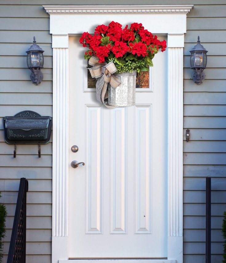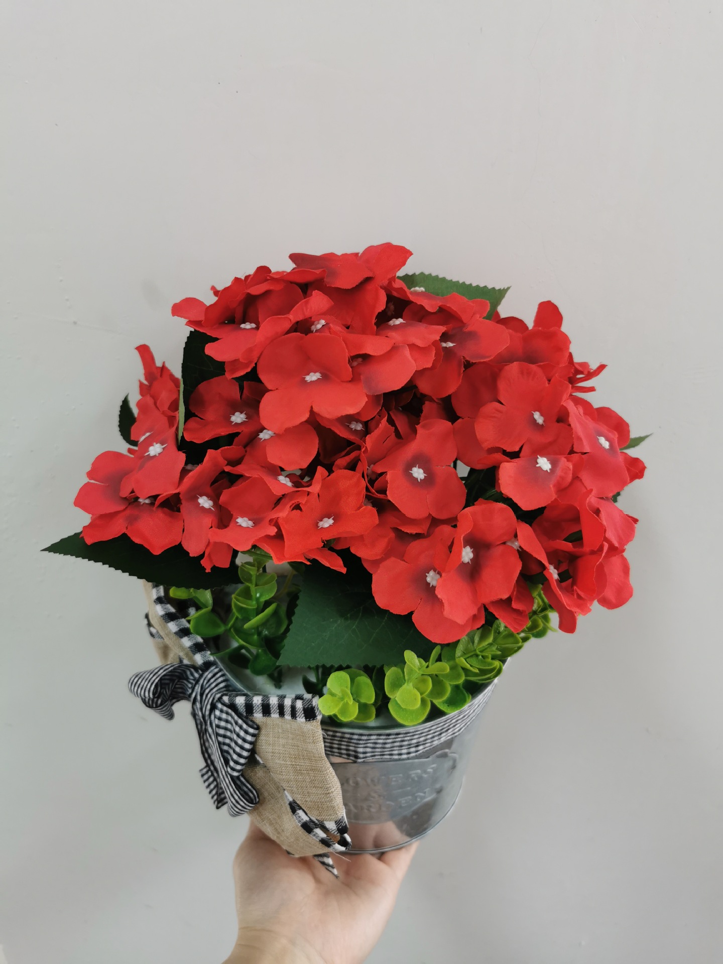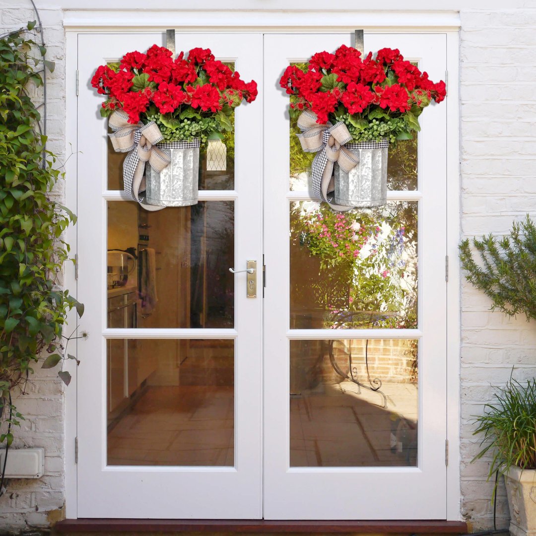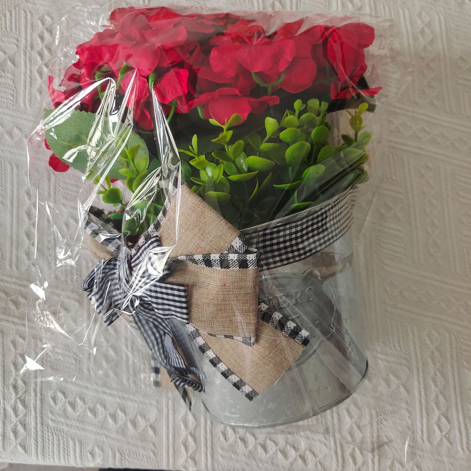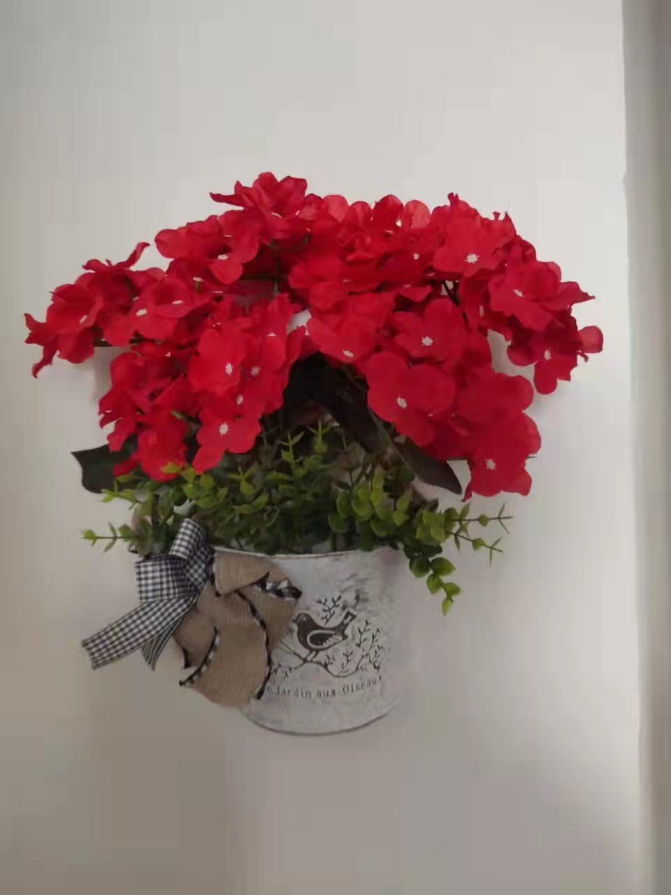 Red Christmas Wreath with Butterfly Bowknot Decoration, Half Handmade Half Machine