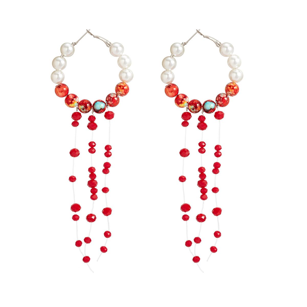 - ["Unique design with Halloween Blood Drop Tassel Pendant","Handmade with high quality alloy material","Various models to choose from","Pearl chain style","Perfect gift for women"]