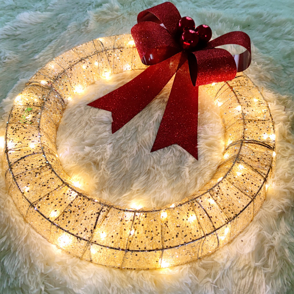 Gold Metal Christmas Flower LED Warm Light Butterfly Decoration for Door