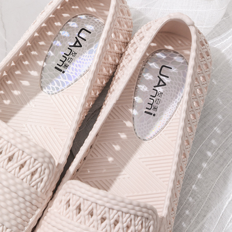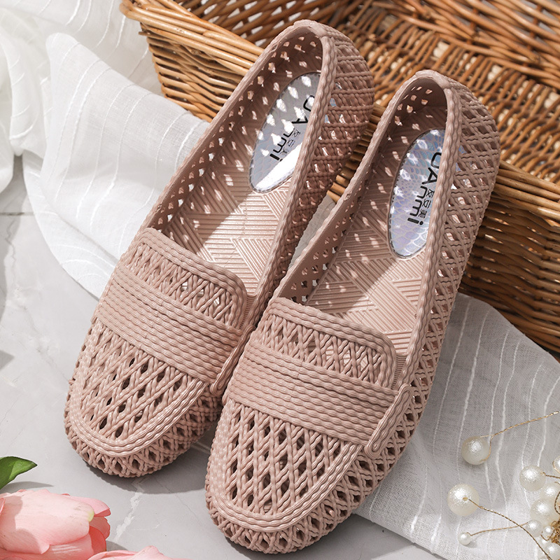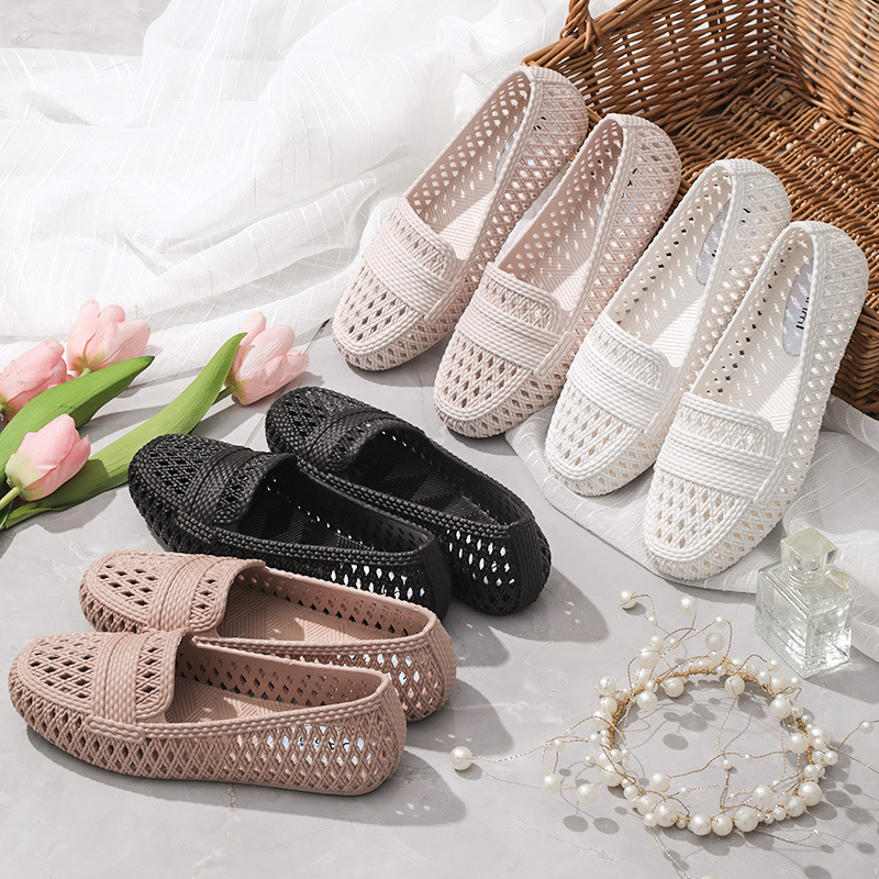 Comfy Casual Women Shoes with PVC Material, Round Toe and Breathable Holes