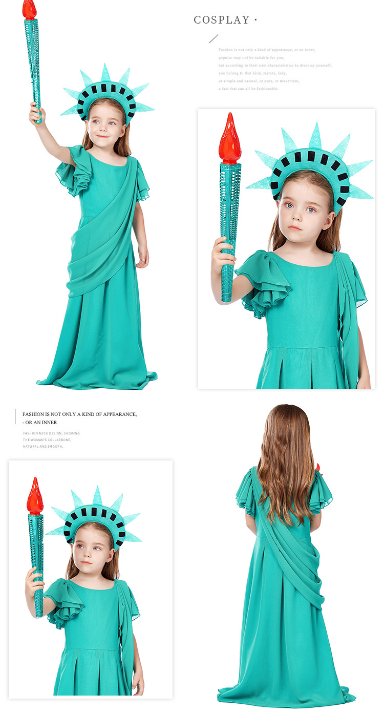 Girls' American Goddess Costume, Greek and Roman Style Dress for Children, Suitable for Halloween