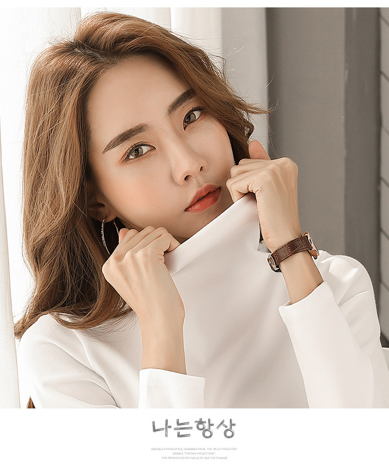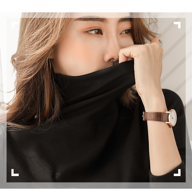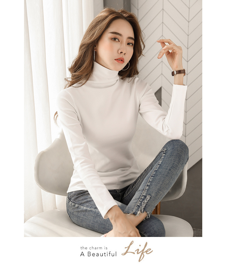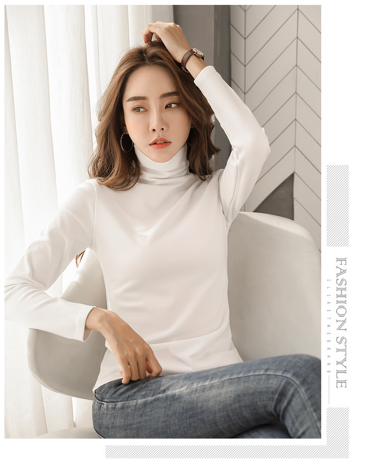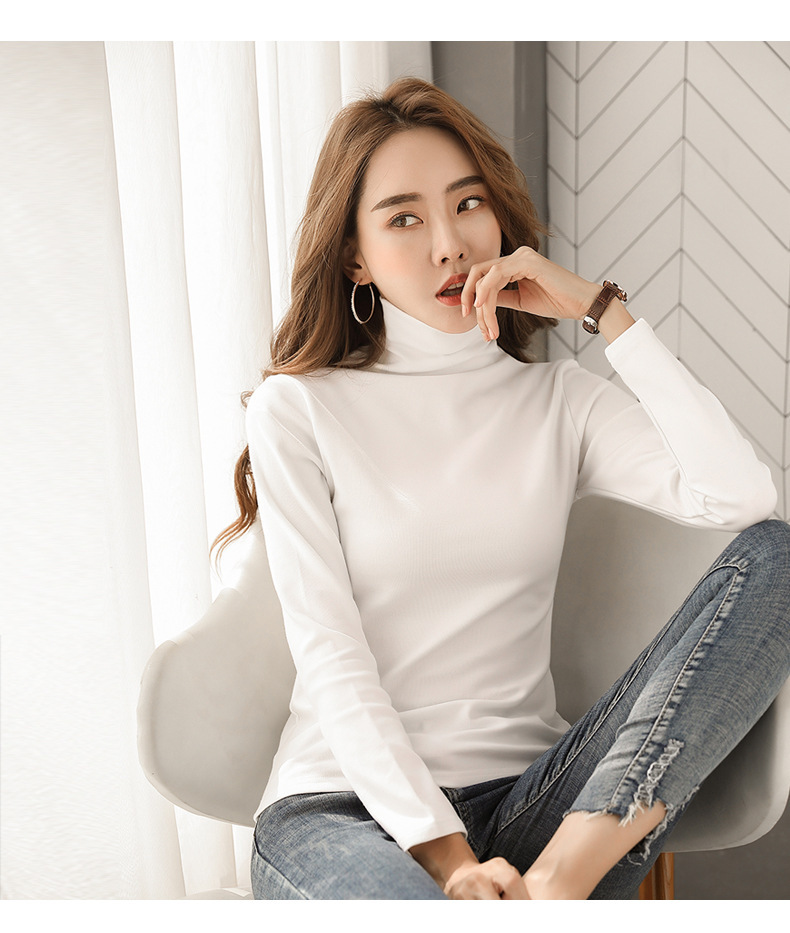 Women High Neck Warm T-shirt, Pure Color, Slim Fit, Autumn New Style, Long Sleeve T-shirt for Students