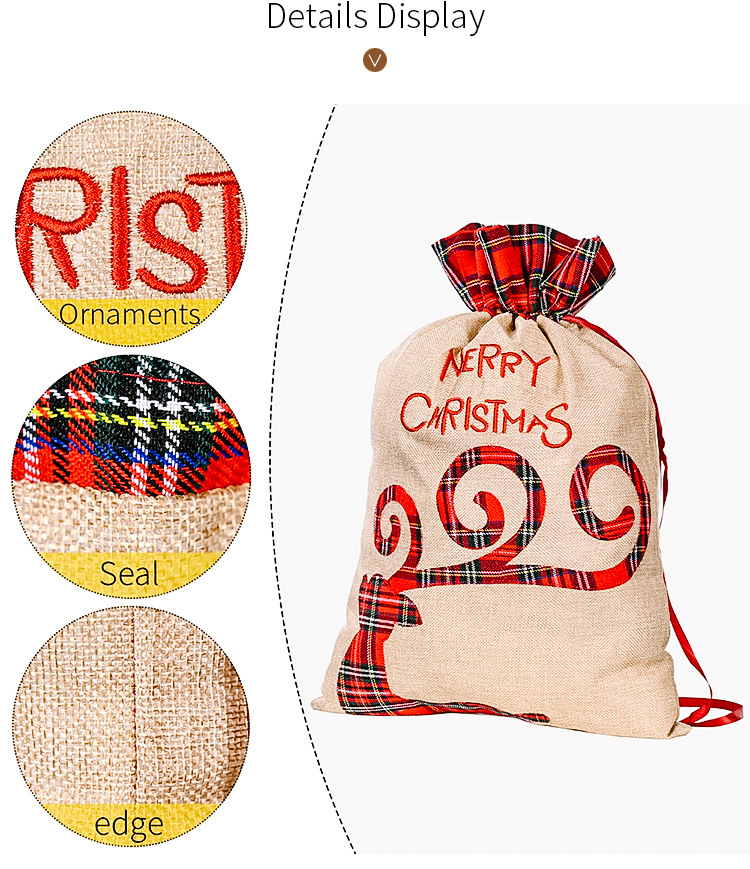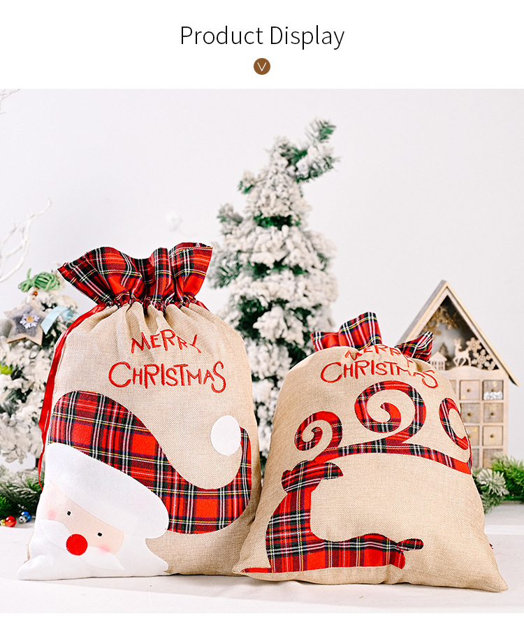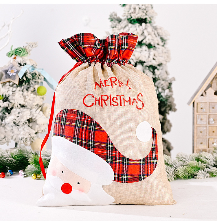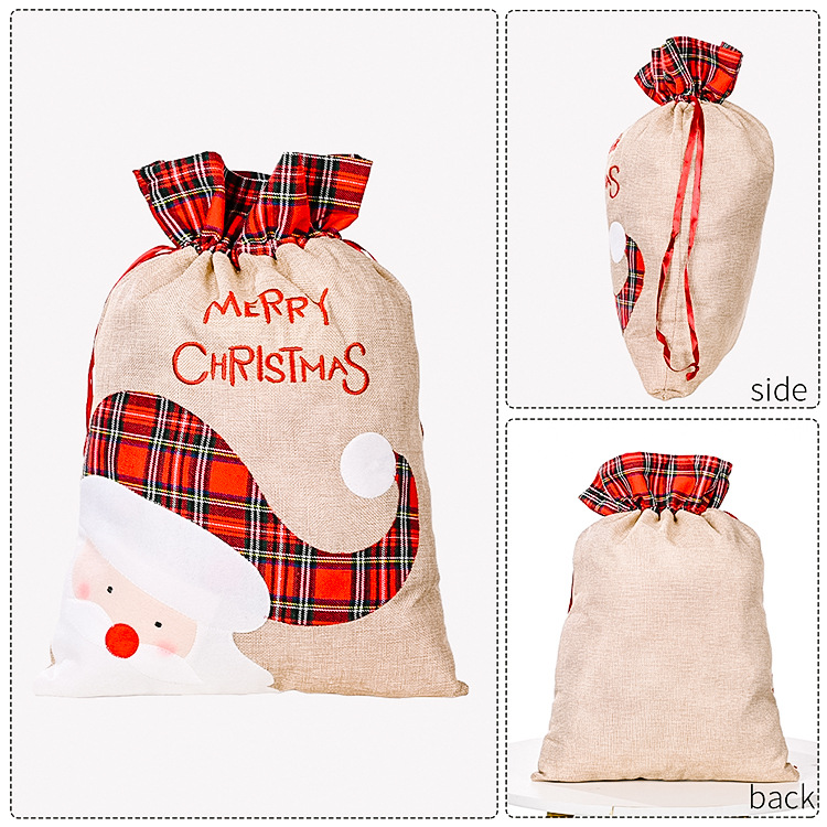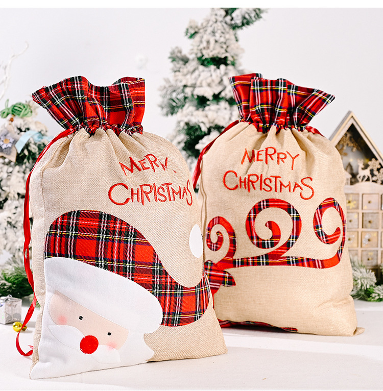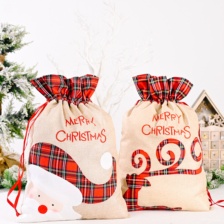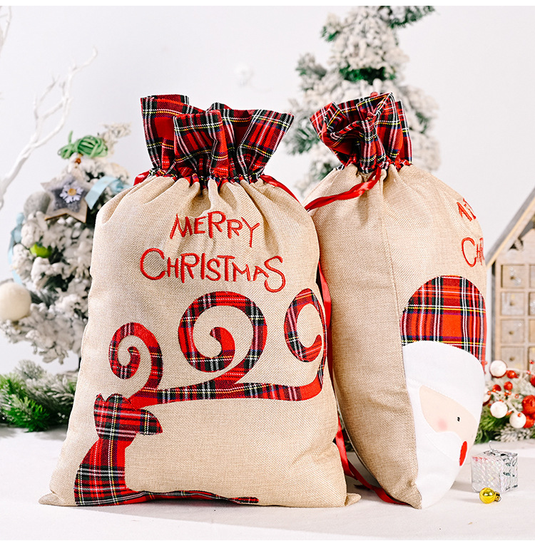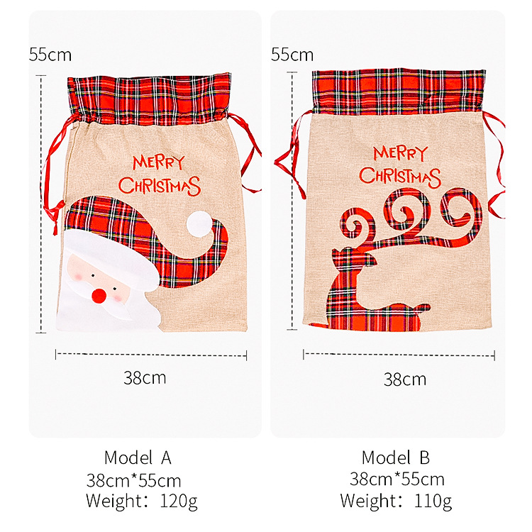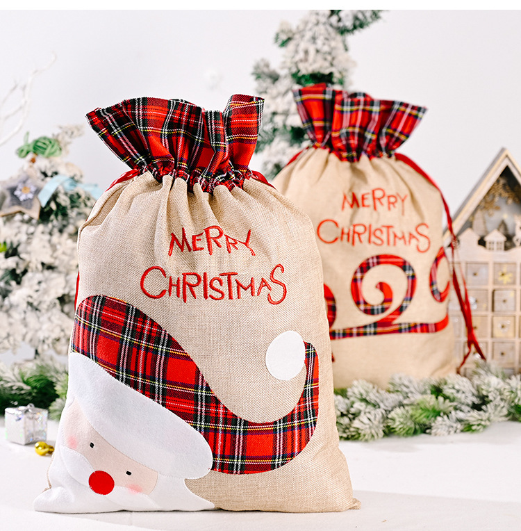 Christmas Decoration Grid Stitch Bag Kids Festival Gift Bag Candy Bag