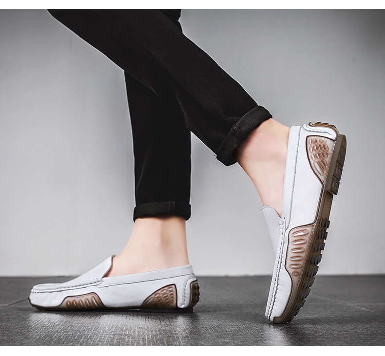 - ["Made of genuine leather for durability","Comfortable and soft bottom for driving","Flat sole for stability","Fashionable and casual style","Suitable for Autumn season"]