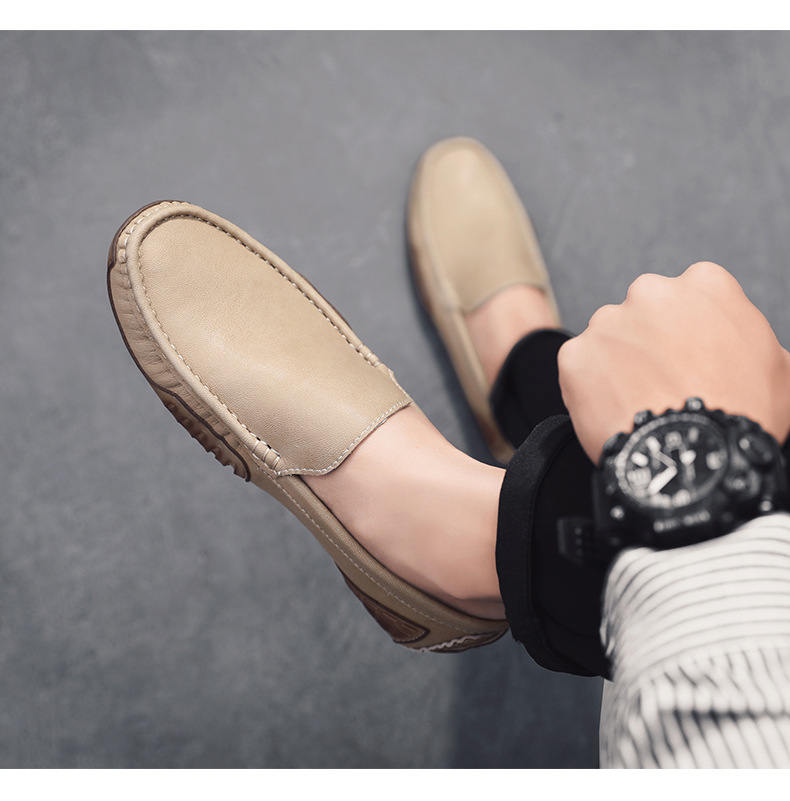{"Style":"Casual Shoes","Pattern":"Solid Color","Function":"Breathable","Age Range":"Adults","Thickness":"Regular Thickness","Toe Shape":"Square Toe","Heel Height":"Flat Heel","Tube Height":"Low Tube","Sole Material":"Rubber","Wearing Style":"Sleeved/Sneaker","Inner Material":"Leather","Upper Material":"Leather","Fashion Element":"Stitching Line","Insole Material":"Textiles","Inspection Unit":"SGS","Processing Method":"Embossing","Sole Craftsmanship":"Stitched Shoes","Gender Applicability":"Male","Seasonal Suitability":"Autumn","Leather Characteristics":"Cowhide","Quality Inspection Report":"Yes"}