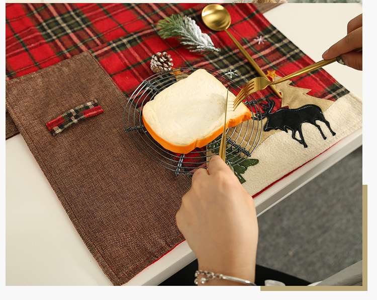 {"Size":"44*33cm","Category":"Christmas Placemat","Material":"Fabric","Packaging":"OPP Bag","Is it a Gift":"No","Craftsmanship":"Semi-manual and Semi-mechanical","Patented Source":"No","IP Authorization":"No"}