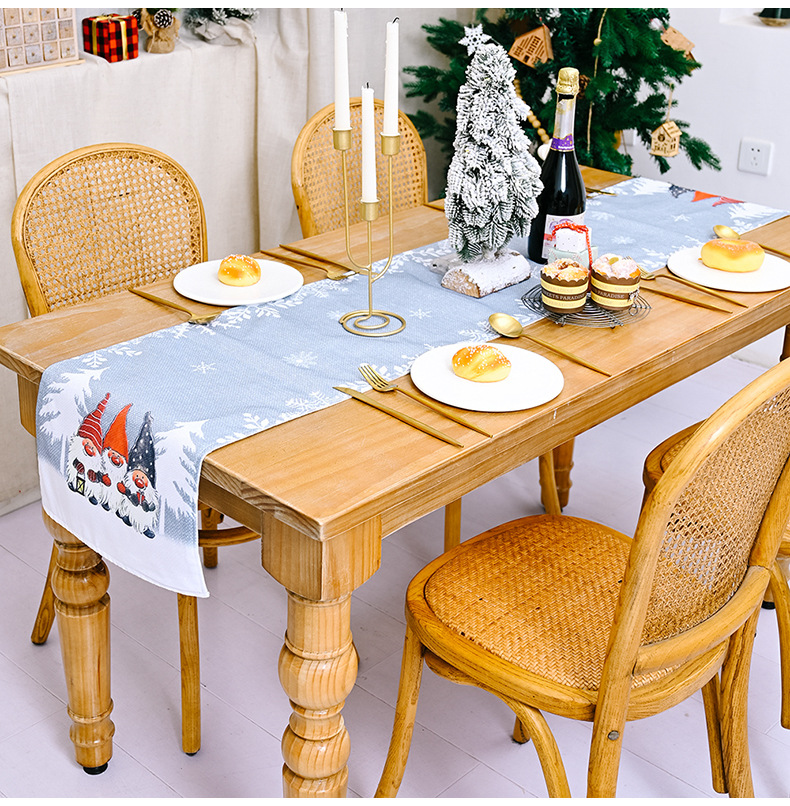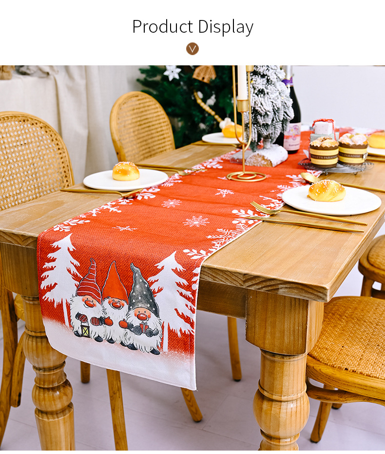 - ["Beautiful Christmas Decor Forest Santa Snowflakes Flag Tablecloth with Floral Print Table Mat","Made of high quality material","Ideal for home decoration","Perfect for Christmas gift","Suitable for parties and gatherings"]