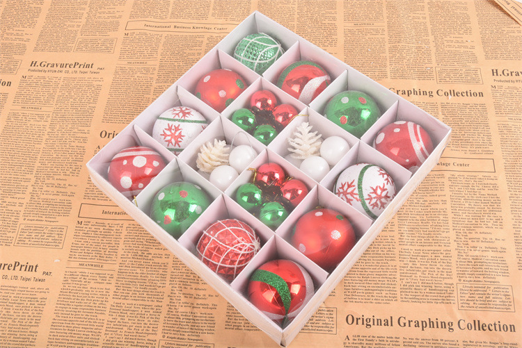 - ["42 pieces of Christmas decorations set with Christmas balls and hanging ornaments","Made of high-quality polyester material, durable and safe to use","Perfect for decorating Christmas trees, mantles, banisters and other places","Easy to install and remove, no tools needed","A great gift for your family and friends on Christmas"]