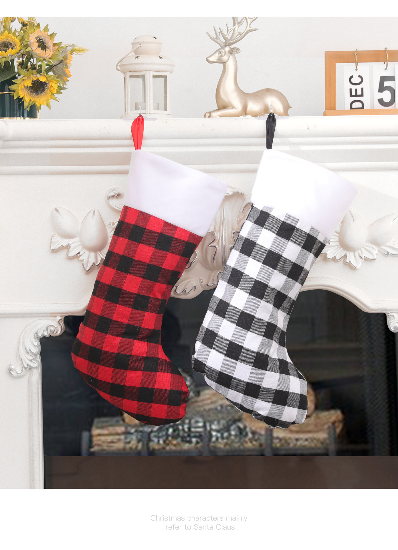 Qiaochi New Festival Atmosphere Decoration Gift Bag Double-colored Floral Plaid Christmas Socks Gift Bag