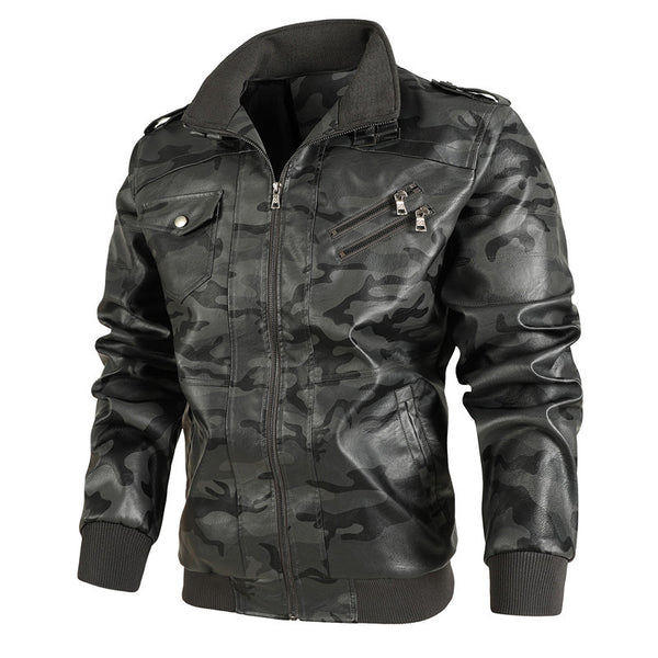 Men's Retro PU Motorcycle Jacket with Pull Chain Decoration, Autumn Style for Young Adults (18-35 Years Old)