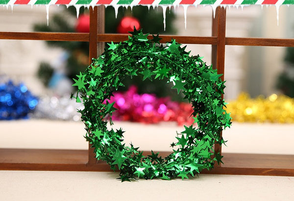 - ["High quality material for durable use","Beautiful Christmas decorations to create a festive atmosphere","Easy to install and disassemble","Colorful tinsel and five-pointed star wreath for a perfect Christmas look","Suitable for indoor and outdoor use"]