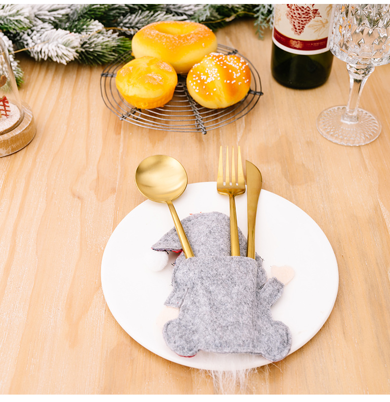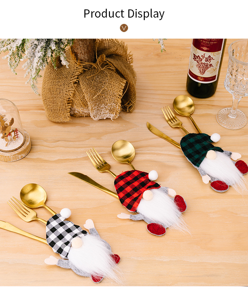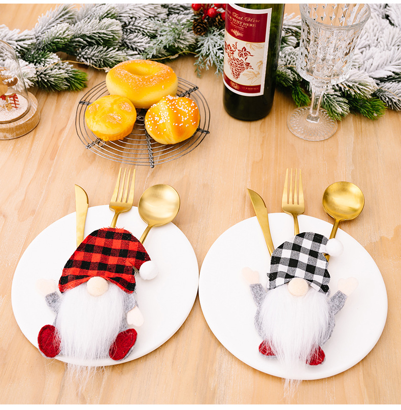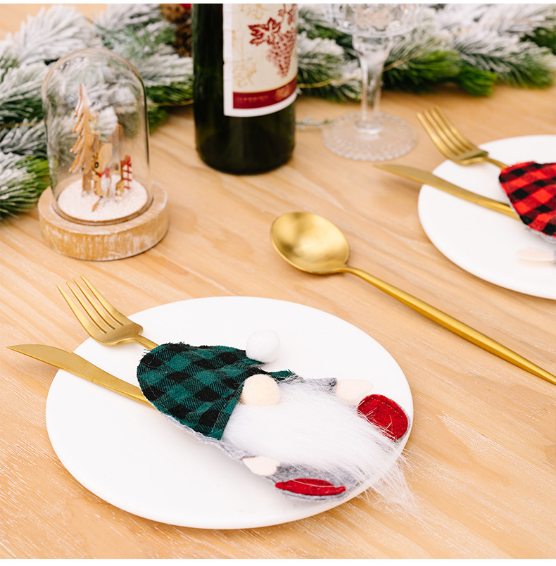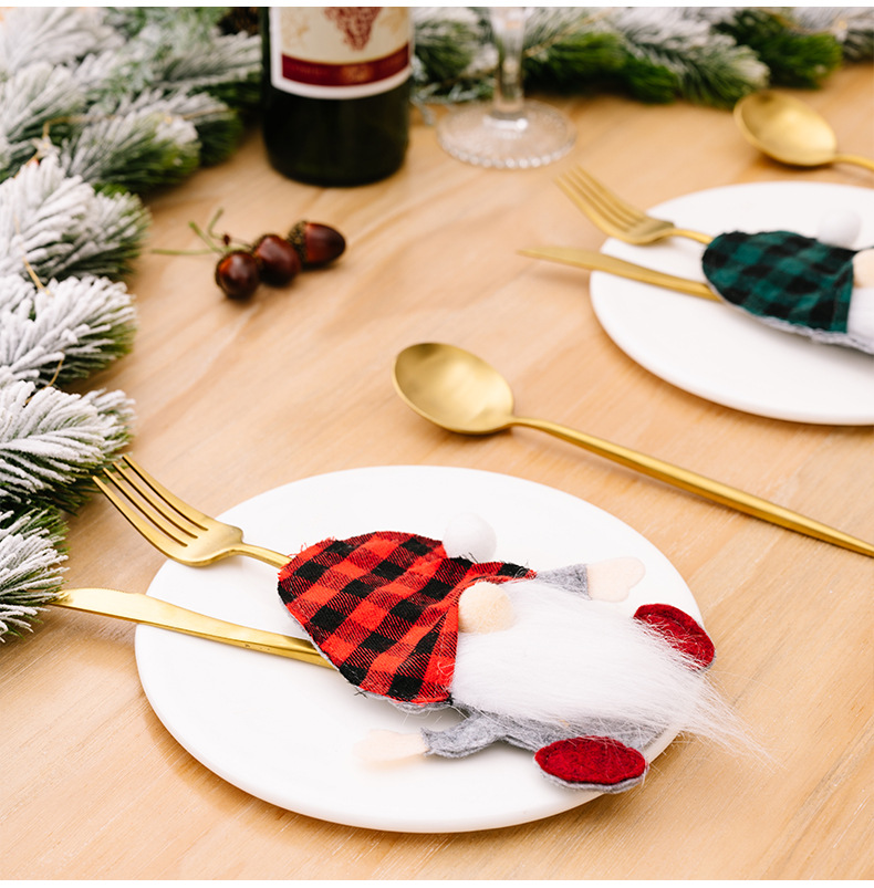 Christmas Decorations Set - Grid Dwarf Fork and Knife Set with Forest Old Man Tableware Set