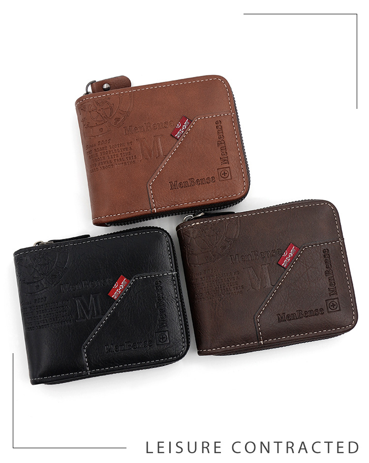 Fashionable Zip Men Wallet with PU Leather, 3 Folds, Pull Chain, and Multi-Functional Interior Structure