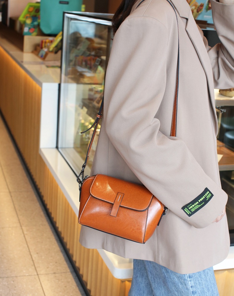 Fashion Retro Cowhide Genuine Leather Women Bag Spring Summer Wax Leather Single Shoulder Bag 6010